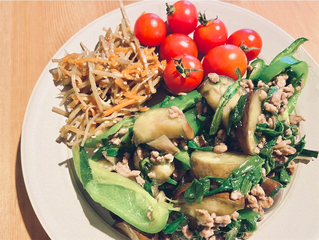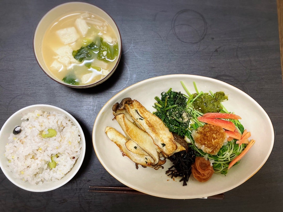 - 현미밥 1공기 + 닭가슴살 구이 + 다양한 채소 볶음