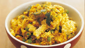- 두부는 물기를 제거하고 큐브 모양으로 썬다.