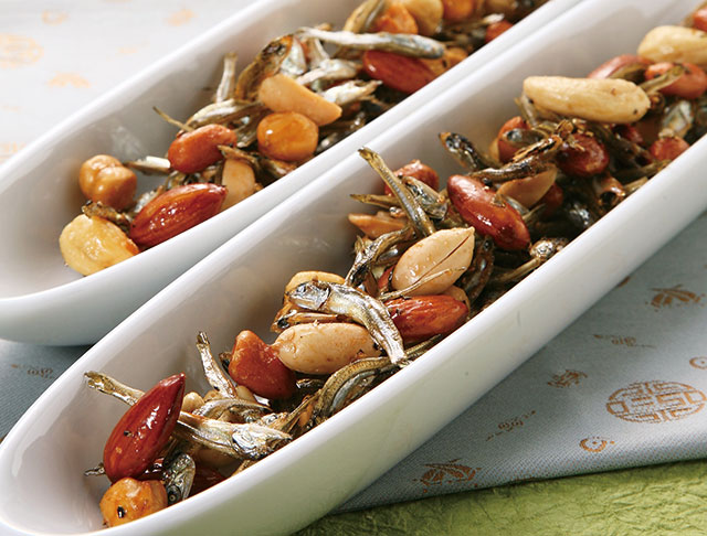 | 1. 냄비에 물, 설탕, 진간장, 맛술을 넣고 끓입니다. 2. 끓기 시작하면 호두, 아몬드, 땅콩을 넣고 중불에서 10분간 조립니다. 3. 조림이 끝나면 식혀서 밀폐 용기에 보관합니다. |