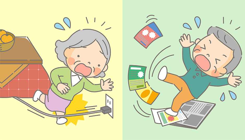 주변 환경에서 낙상을 예방하기 위해, 바닥을 정리하고 조명을 밝게 해 두며, 미끄럼 방지 조치를 취하는 것이 중요합니다.