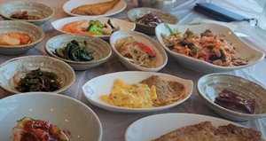 영덕 여행중 가성비 좋은 음식으로 한끼 든든히 하고 싶으시다면 밥한끼를 추천할 수 있습니다. 돌솥정식(12.0), 수육한접시(10.0)등의 메뉴가 있으며 주력메뉴는 돌솥정식으로 생선구이와 수육 그리고 굴등을 포함한 약 15찬과 찌개에 돌솥밥까지 맛볼 수 있습니다.
