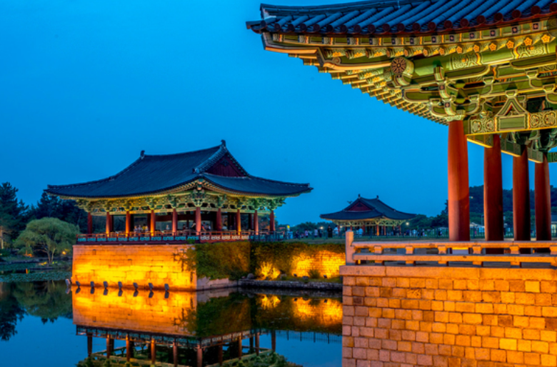 경주 가볼만한곳 베스트10 첫번째는 동궁과 월지입니다. 안압지라는 이름으로 더욱 유명한 이곳은 야경의 명소로 손꼽힙니다. 주간에 관광을 마치시고 안압지로 야간일정을 잡으시면 정말 환상적인 야경을 감상하실수 있습니다. 이곳은 신라시대에 왕자들이 기거하던 별궁자리였는데요. 나라의 경사가 있을때 연회를 베풀었던 장소였다고 합니다. 연못인 월지가 먼저 조성되고 한참 후에 동궁도 건립되었다고 합니다.
