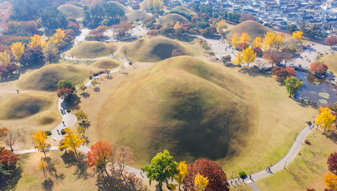 경주 가볼만한곳 베스트10 두번째는 경주대릉원입니다. 흔히들 경주는 땅을 파면 모두 문화재라는 말이 있습니다. 하지만 고분은 정체를 숨길 수가 없었습니다. 우뚝 솟은 고분이기 때문인데요. 이곳은 신라 초기의 무덤들이 모여있는 곳입니다. 그중에는 봉분이 없어진 고분도 있다고 합니다. 30개의 고분이 있는 이곳에서 천마도가 그려진 안장을 비롯해서 많은 문화재가 발견되기도 했습니다.