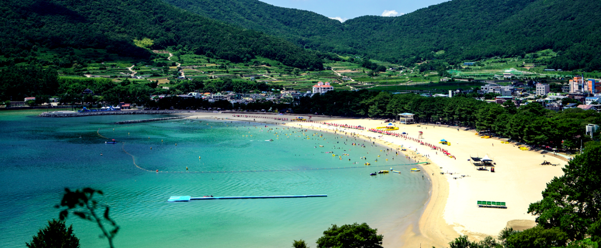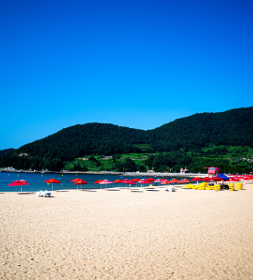 "은빛의 고운 모래, 깨끗한 바다, 자연 송림"