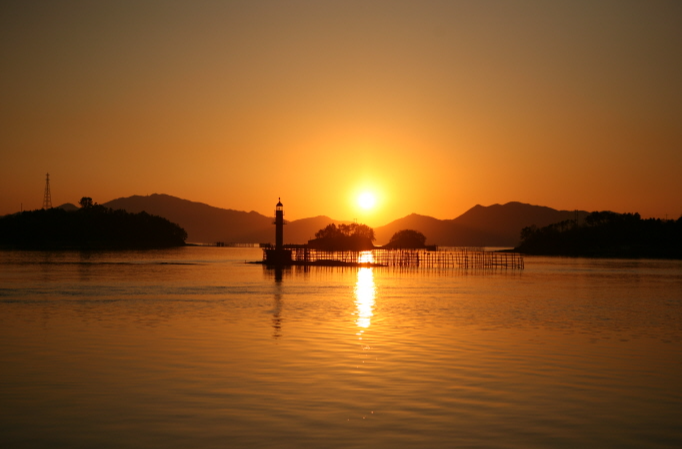 죽방렴은 원시형태의 어업으로 이곳 죽방렴은 민속문화재로 지정된 곳입니다. 그물이 없던 시절에 참나무와 대나무를 활용하여 참나무로 된 말목을 개펄에 주렴처럼 엮어 만드는 그물을 조류와 역방향으로 설치하여 그물에 갇힌 고기를 간조시에 취하는 전통적인 어업방식으로 우리에게도 익숙한 죽방멸치가 이 방식으로 잡는 멸치라고 합니다.