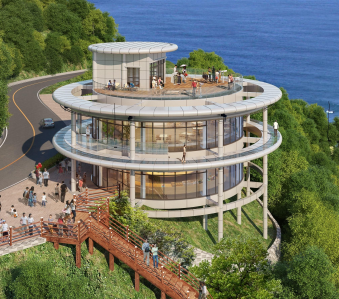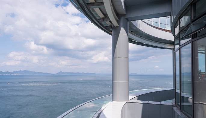 등대를 모티브로 만들어진 남해보물섬 전망대는 남해의 별칭인 '보물섬'과 남해를 아름답게 비추는 등대의 모습을 형상화하여 만들어진 곳입니다. 360˚ 바다 조망이