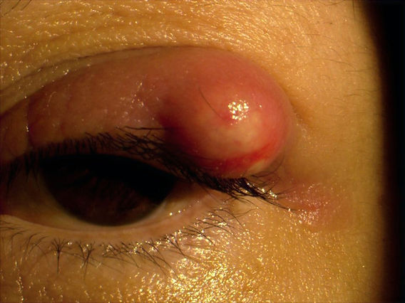 - 겉다래끼(외맥립종) : 눈꺼풀 외부에 발생, 짜이스샘, 몰샘에 생기는 급성 화농성 염증