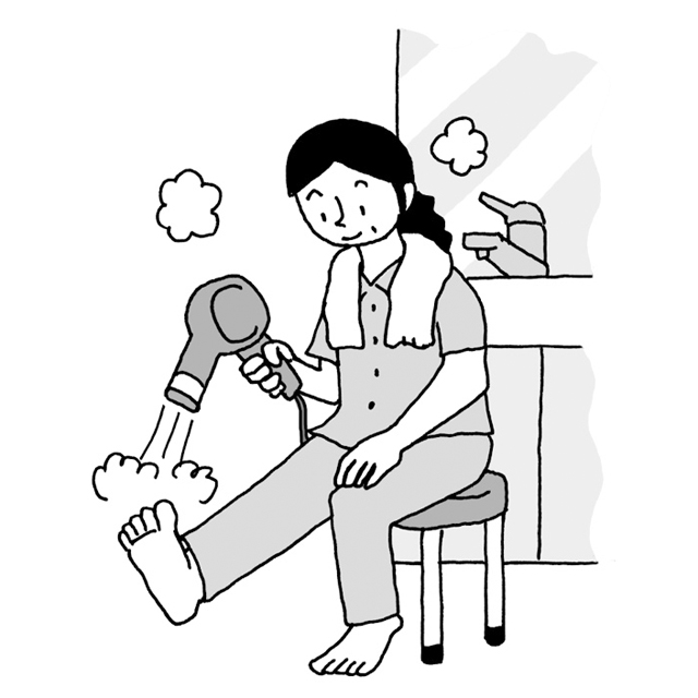 - 땀을 많이 흘리는 경우, 발에 파우더를 사용하여 습기 제거하기