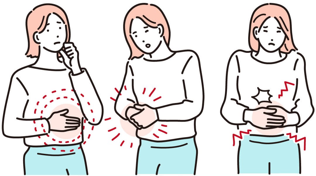 ① 여성의 경우, 생리 전이나 생리 중에 하복부에서 살살 아프고 묵직한 통증이 발생할 수 있습니다.