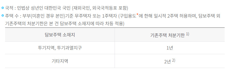 5)신혼가구 부부한산 연소득 8천5백만원 이하, 주택면적은 85m2이하(수도권제외 도시지역 아닌 읍,면 지역은 100m2이하) 신혼가구는 혼인일로부터 7년이내거나 결혼예정자. 대출신청일로부터 3개월 이내에 혼인신고 완료해야함