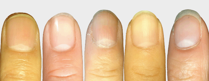 - 손톱의 곡률 : 손톱이 지나치게 오므라들거나 마름모꼴로 변하면, 이는 만성폐쇄성폐질환 같은 폐질환이나 심장병의 신호일 수 있습니다.