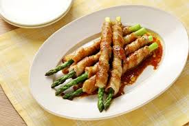 - 아스파라거스 2줄씩 모아 베이컨 한 장으로 단단히 감아줍니다.