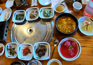 안동 간고등어와 맛있는 찌개를 함께 드시고 싶다면 산청식당을 추천합니다. 간고등어+청국장(13.0), 간고등어+된장(12.0), 돼지두루치기(11.0)등의 메뉴가 있으며 찌개는 각각 단품으로도 식사가 가능합니다. 큼지막하고 살이 통통한 간고등어가 특징으로 깔끔한 반찬과 함께 찌개도 맛있어 현지인 맛집입니다.