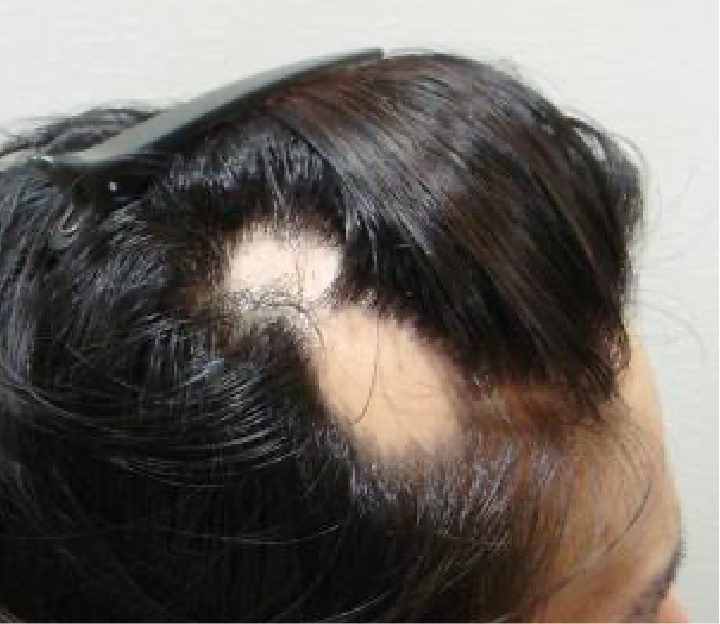 - 사행성 두부 탈모증 : 탈모가 측두부와 후두부의 바깥 둘레를 따라 띠모양으로 발생하는 경우입니다.
