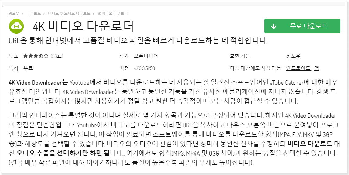 4K Video Downloader는 콘텐츠를 비디오, 오디오 및 이미지 파일로 변환하는 무료 소프트웨어입니다. 링크를 소프트웨어에 복사하여 붙여넣으면 사용자가 원하는 장치에 다운로드할 수 있습니다.