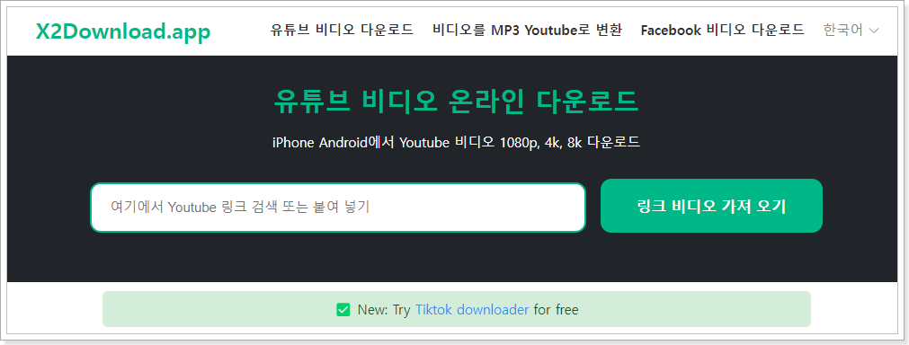 - 유튜브 동영상 링크를 붙여 넣어 다운로드 가능