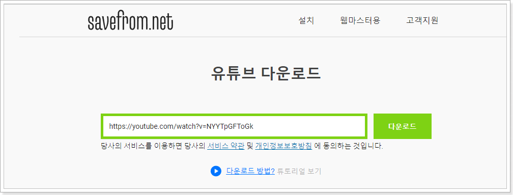 1.3. savefrom에서 유튜브 동영상 다운로드