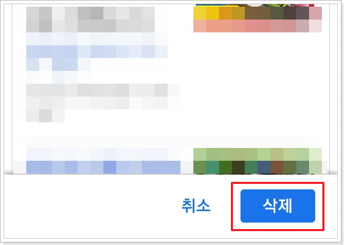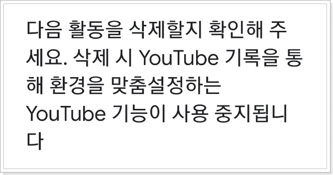 6. 구글에서는 마지막으로 맞춤설정이 되지 않는것을 확인합니다. 화면 하단의 '삭제' 버튼을 눌러 유튜브 알고리즘 초기화를 완료합니다.