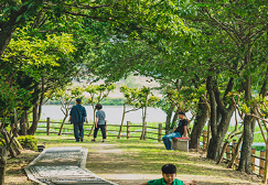 세월과 황룡강의 힘으로 상류의 모래와 흙이 쌓여 섬이된 이곳은 오랜 세월 원시상태로 남아있었습니다. 하지만 지금은 많은 사람들이 찾는 전라도 광주 가볼만한곳 베스트10 여행지가 되었습니다. 생태연못과 플라타너스 광장 그리고 넓게 펼쳐져 있는 잔디광장이 있으며 나룻배를 타볼 수 있습니다.
