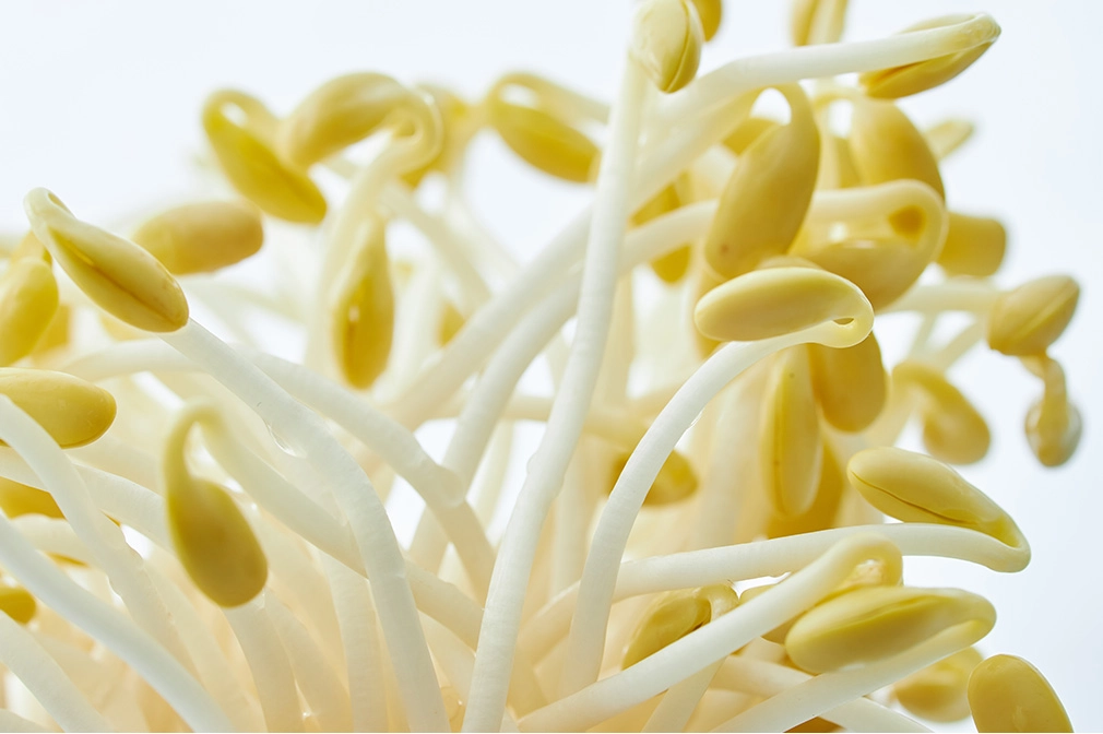 콩에는 단백질이 풍부합니다. 근육 유지를 위해서는 단백질이 필수적인데 콩의 단백질 함량은 무려 40%에 이릅니다. 또한 콩나물이 함유한 이소플라본 성분은 골밀도를 높여주고 뼈를 튼튼하게 하는 효과가 있어 골다공증 예방과 치료에 매우 효과적입니다.