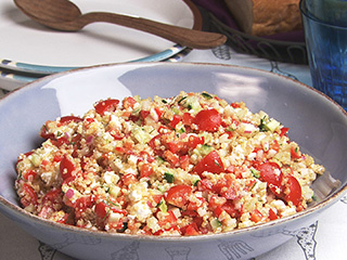 | 퀴노아 1컵 물 2컵 오이, 토마토, 양파 (다진 것) 올리브유, 레몬즙, 소금, 후추 (드레싱용) |