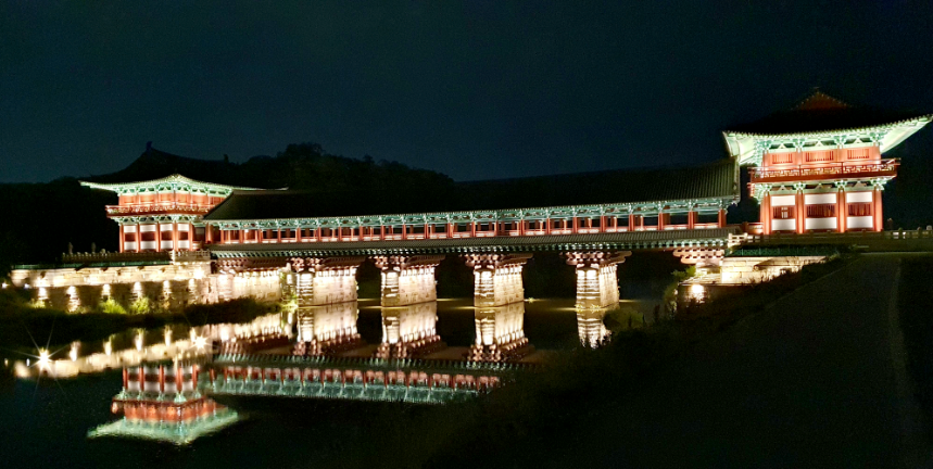 경주 가볼만한곳 베스트10 여덟번째는 월정교입니다. 신랏시대 월성과 남쪽을 이어주는 교량으로 목조교량입니다. 조선시대에 월정교는 유실되었습니다. 이를 2018년 4월 복원을 완료한것입니다. 월정교 문루 2층에 복원 과정을 담은 전시관이 있으니 한번 방문해보셔도 좋습니다. 월정교를 방문하신다면 꼭 야간에 방문하시는것을 추천드립니다. 야경이 너무 아름다운 곳입니다.