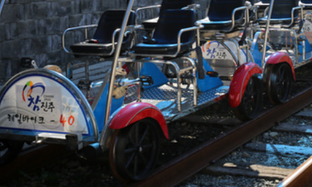왕복 4km 구간의 레일바이크로 소요시간은 약 40분이 소요됩니다. 레일바이크외에도 각종 놀이시설과 게임시설을 구비하고 있어서 조용한 진주여행에 활력이 되어주는 코스입니다. 구간에는 아름다운 남강은 물론이고 코스 내내 진주의 아름다움을 느껴보실 수 있는 코스로 구성되어 있습니다. 진주 가볼만한곳 베스트10 진주 레일바이크는 경상남도 진주시 내동면 망경로 13에 위치하며, 이용료는 일반: 9,000원(36개월 이상)이지만 촉석루나 수목원을 이용하고 방문시 할인권: 8,100원(촉석루, 수목원 티켓지참)으로 할인을 적용받으실 수 있습니다.